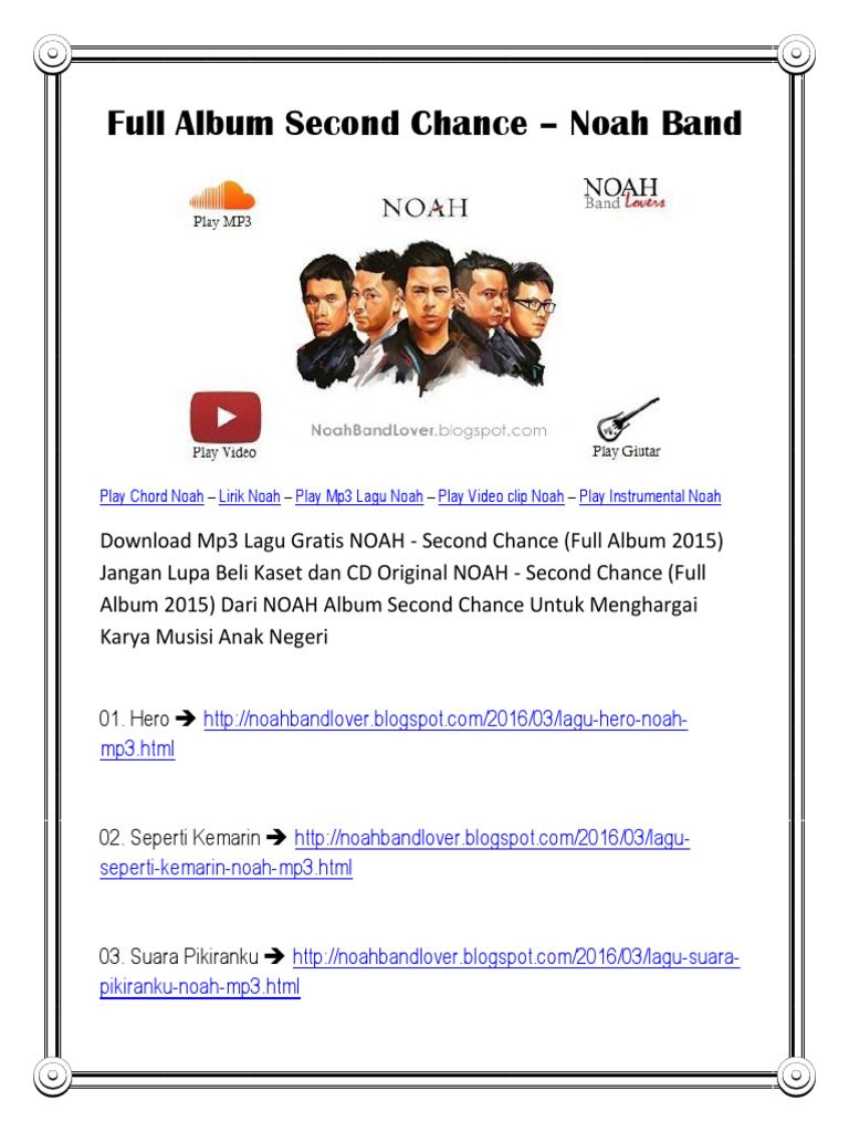 Download Mp3 Lagu Noah Full Album Lengkap Dengan Kunci Gitar Dan