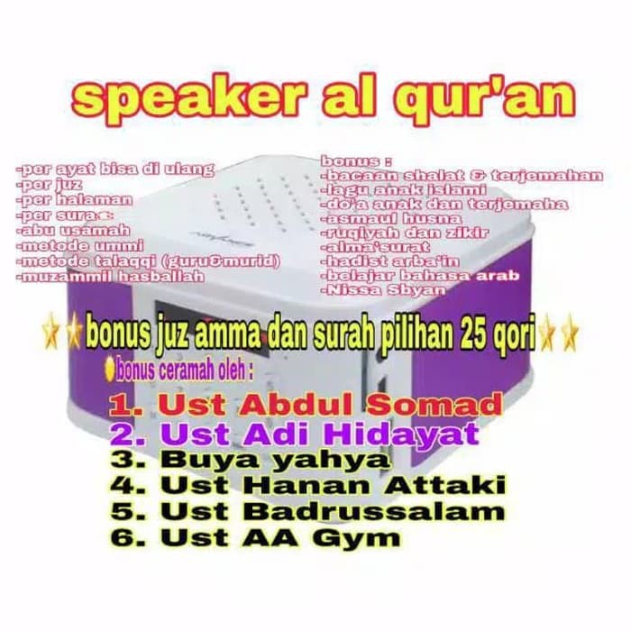 Iqro Audio Speaker Al Quran Portable Terlengkap 16 Gb Ummi Kajian Islami Hadis Doa Bonus Lainnya