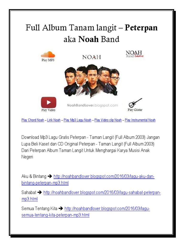 Download Kumpulan Lagu Noah Dan Peterpan Mp3 Full Album Terbaru Dan