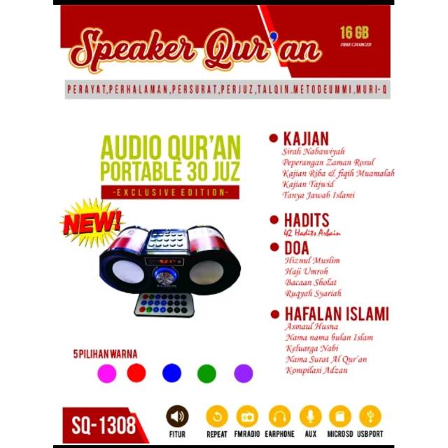 Iqro Audio Speaker Al Quran Portable Terlengkap 16 Gb Ummi Kajian Islami Hadis Doa Bonus Lainnya
